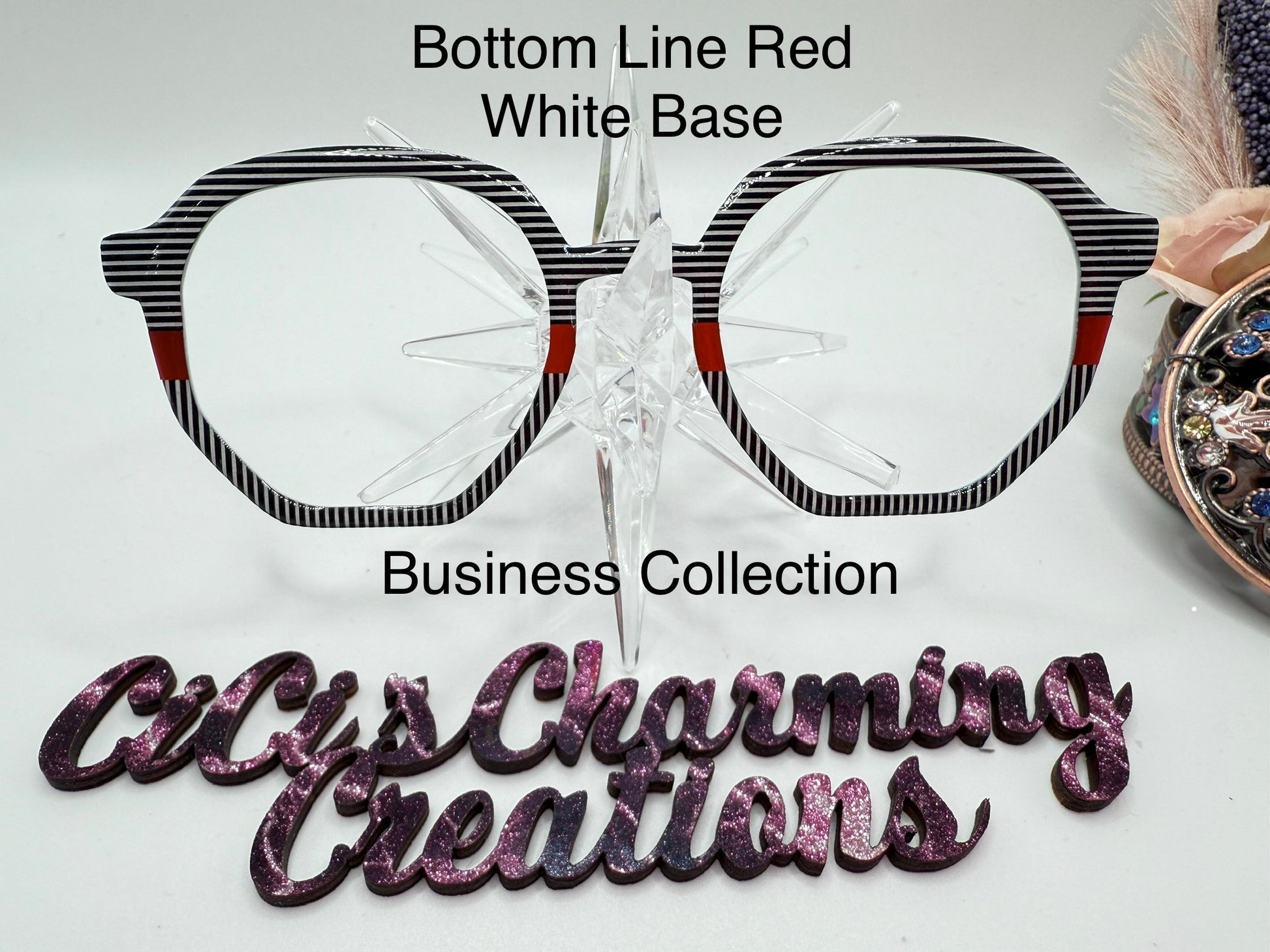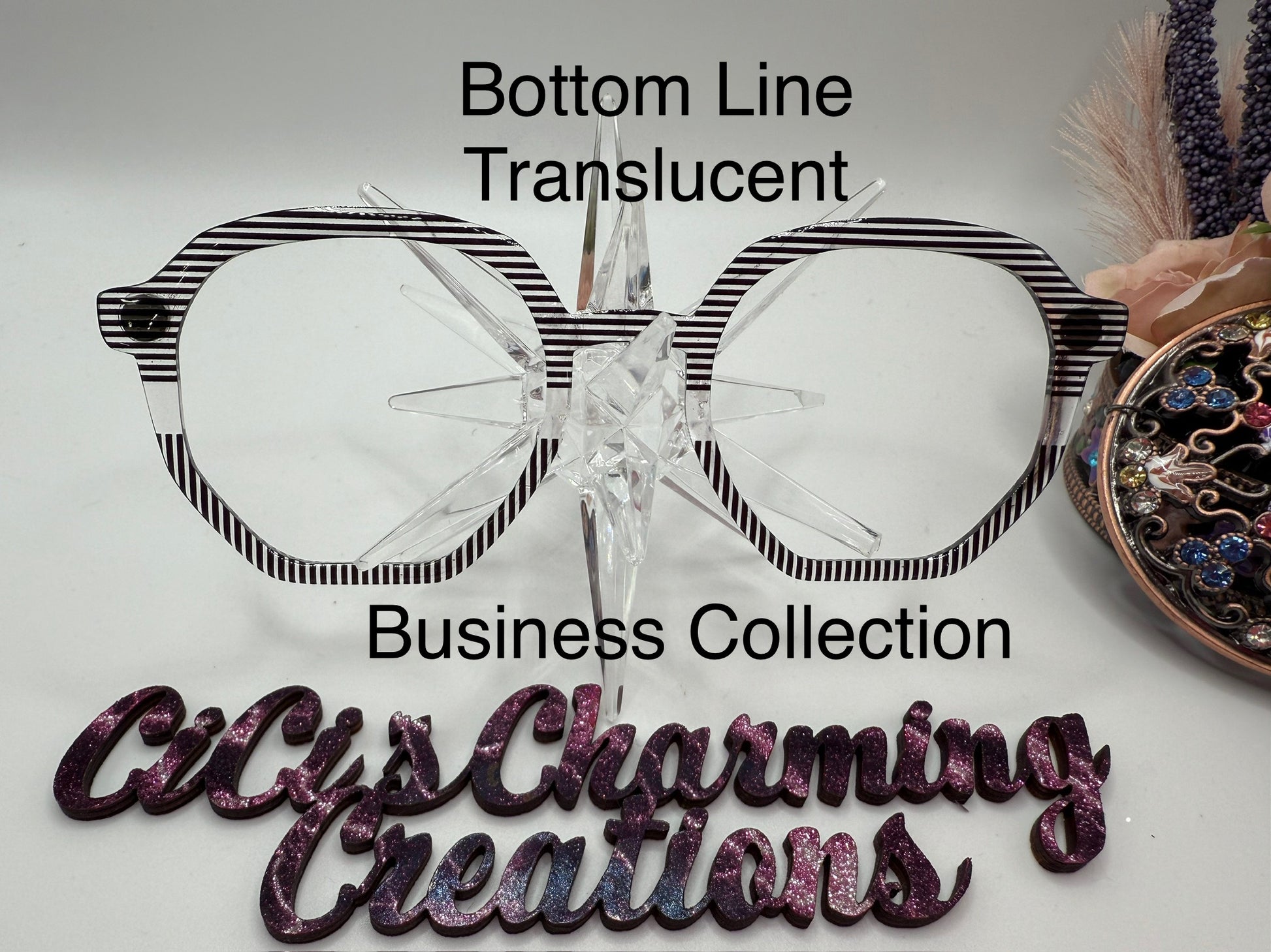 Black and white (clear on translucent) lines. Shown on translucent and white with resin. Center can be any color or a foil or color tape can be used in multiple colors. Add choices in notes.