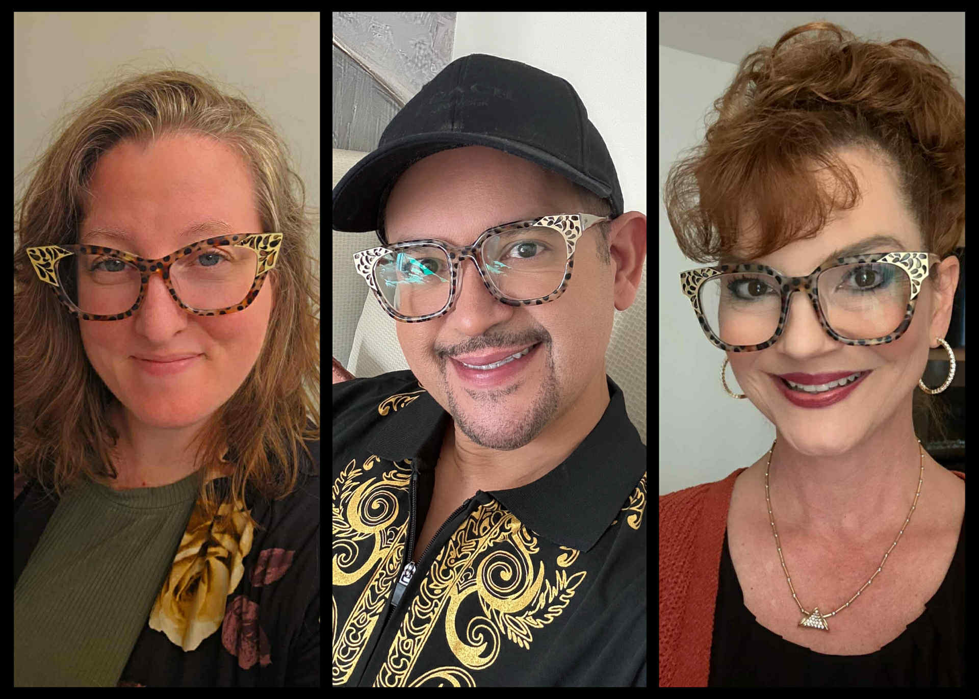 Designer Double Crested is a tort in semi translucent with brushed gold corner accents.