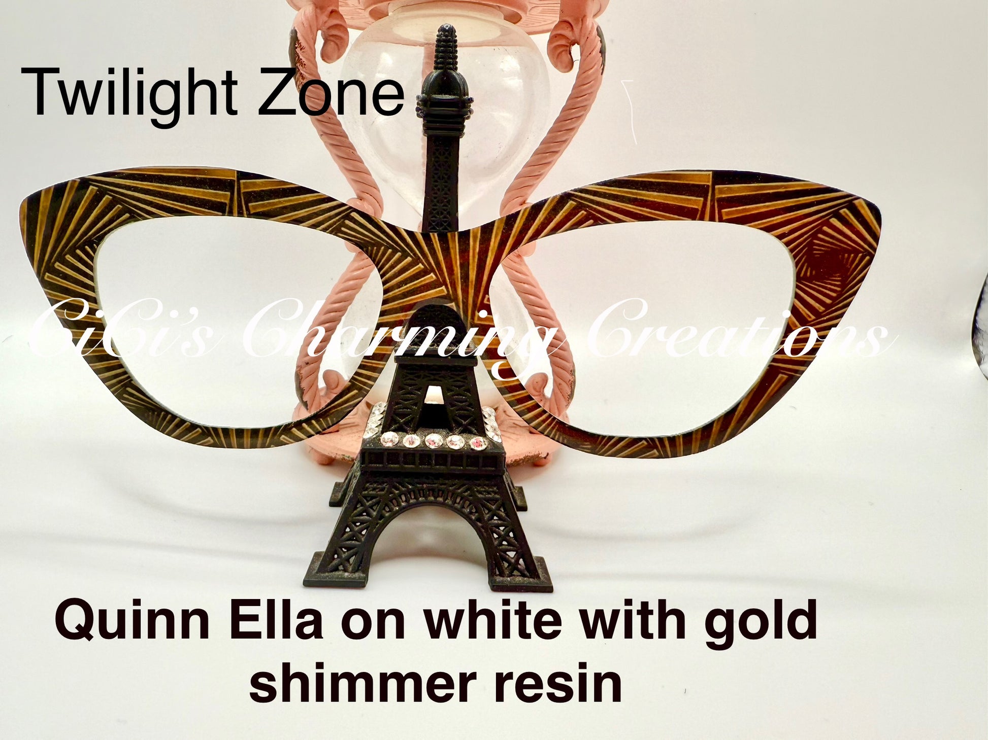 Black and gold design. Shown on white with resin.